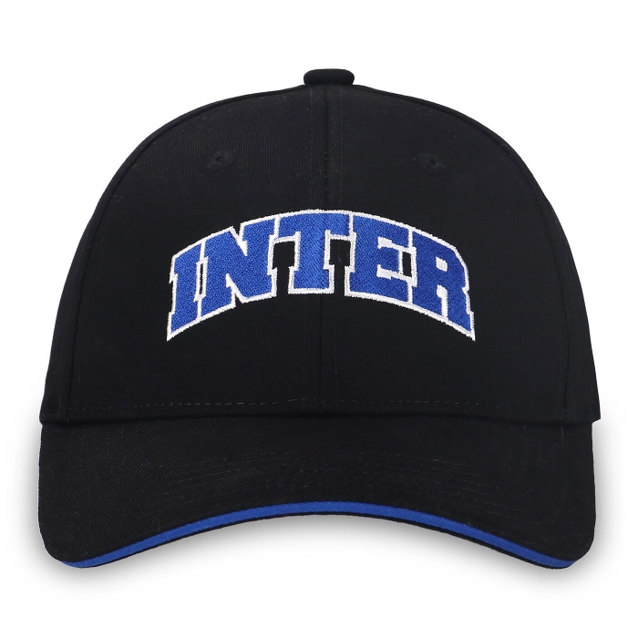 Il cappellino da baseball INTER è un accessorio dal design contemporaneo e di tendenza. E' personalizzato con ricamo scritta INTER e presenta chiusura a fibbia metallica con logo. Il bordo blu della visiera riprende il colore del ricamo.