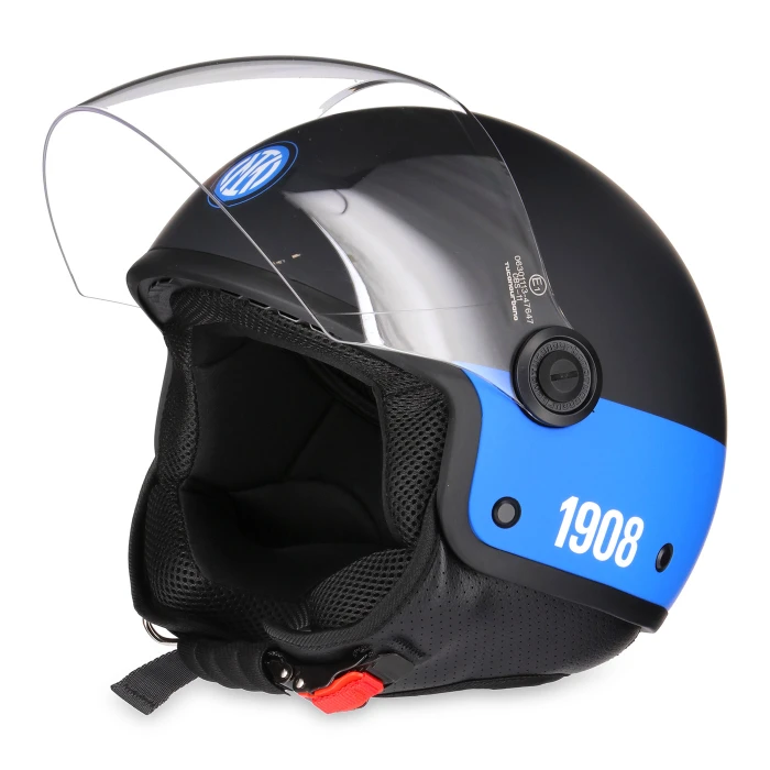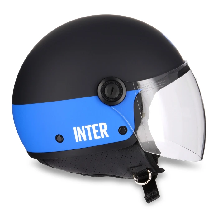 Porta in strada l’orgoglio nerazzurro: il demi-jet più amato di Tucano Urbano si veste Inter per accompagnarti in città con stile da gara.<br /><strong>Dentro il design</strong><br />Calotta nera opaca attraversata da una banda azzurra che corre tutt’intorno, lettering INTER sul lato destro e stemma del Club in posizione frontale: linee pulite e carattere deciso, per un look che parla la lingua di San Siro.<br /><strong>Dettagli prodotto</strong><br />Modello: EL’JETTIN (demi-jet) – edizione speciale Inter<br />Finitura: Matt Black (nero opaco) con banda azzurra circolare<br />Lettering INTER sul lato destro<br />Logo Inter frontale<br />Vestibilità confortevole, ideale per l’uso quotidiano su due ruote<br />Brand: Tucano Urbano<br />Guida taglie (circonferenza testa): XS – 53-54cm; S – 55-56cm; M – 57-58cm; L – 59-60cm; XL – 61-62cm; XXL – 63-64cm.