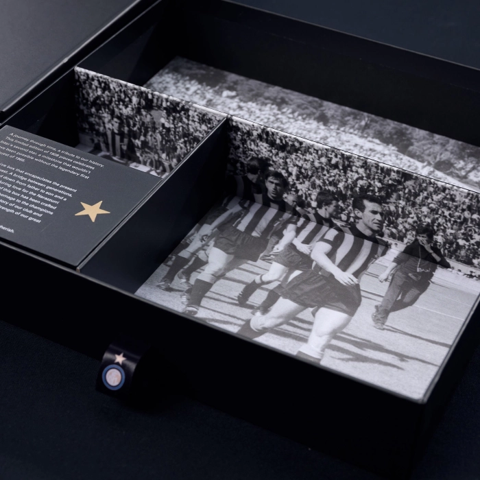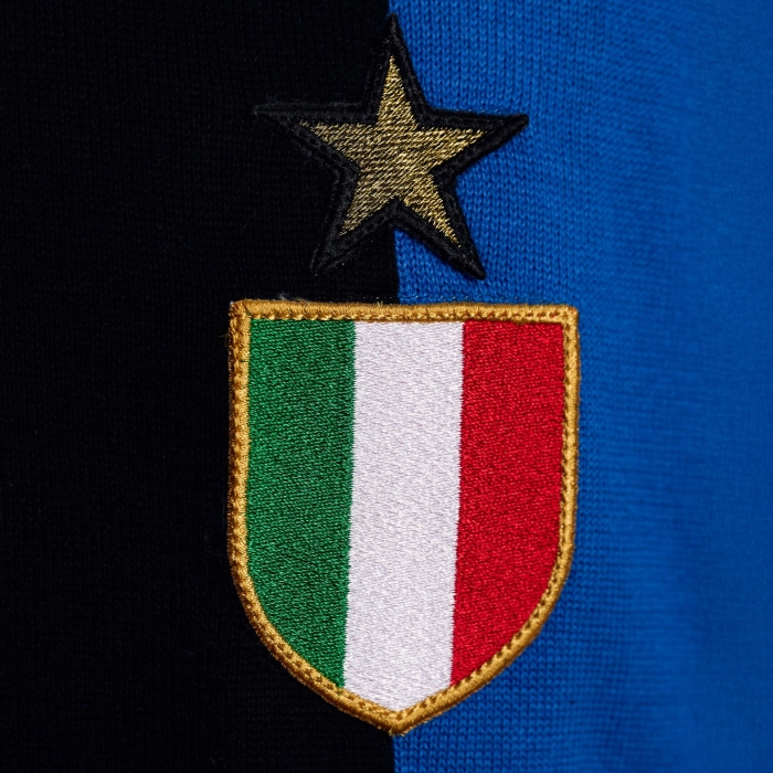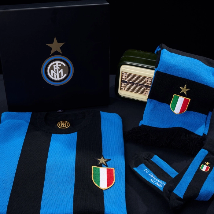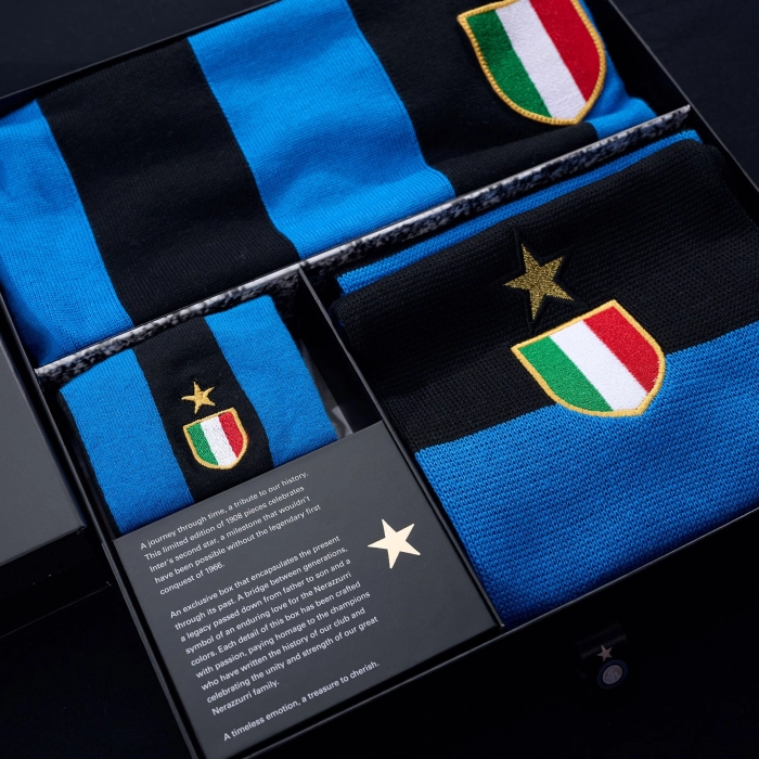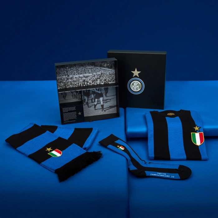 Un viaggio nel tempo, un omaggio alla nostra storia. Questa edizione limitata di 1908 pezzi numerati celebra la seconda stella dell'INTER, un traguardo che non sarebbe stato possibile senza la leggendaria prima stella conquistata nel 1966. Sul cofanetto è presente una grafica speciale dedicata all’iniziativa, creata dall’unione della stella che simboleggia i primi dieci Scudetti conquistati dall’Inter, con il logo ufficiale dell’epoca che dal 1963 al 1979 torna ad essere quello classico disegnato da Giorgio Muggiani e che accompagnerà l’epopea della Grande Inter, con qualche piccola modifica nell’intreccio delle lettere FCIM e un deciso utilizzo del colore oro. All'interno di ogni cofanetto è presente un pezzo numerato della maglia della prima stella, la sciarpa e le calze. La scelta della taglia si riferisce unicamente alla maglia, sciarpa e calze sono in taglia unica.