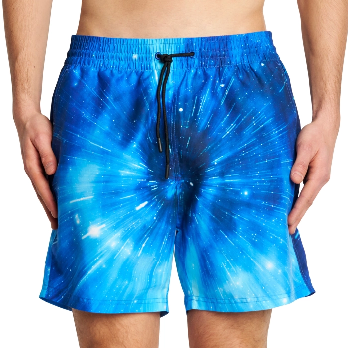 Il costume Galaxy INTER è ideale per sfoggiare la tua passione nerazzurra anche quando sei in spiaggia durante le tue estati al mare. È caratterizzato da un pattern galattico impreziosito con il logo del Club reflective.
