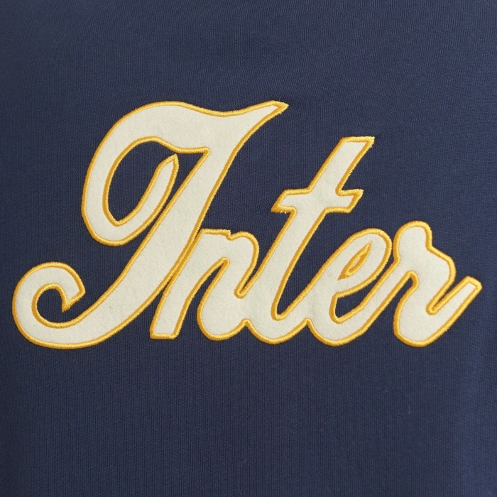 Felpa girocollo in cotone dal design sportivo e distintivo, pensata per i veri tifosi nerazzurri.<br />Sul fronte spicca la grafica “1908” - anno di fondazione del club - in effetto spugna, realizzata nei colori iconici dell’Inter e arricchita dal logo ufficiale del club. Sul retro, la scritta “INTER” le dona un tocco esclusivo.<br />Dotata di polsini, collo e fondo a costine per garantire comfort e vestibilità ottimale, è ideale da indossare nel tempo libero o per sostenere la squadra in ogni occasione.<br /><br />- Vestibilità regolare<br />- Collo, polsini e fondo a costine<br />- 80% cotone, 20% poliestere.