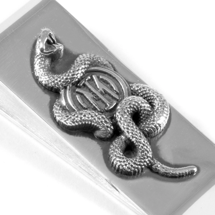 La collezione INTER X 925 celebra l'unione del Club nerazzurro con l'azienda milanese nota per la realizzazione di gioielli in argento. Il fermasoldi personalizzato con il biscione è un esempio di design e cura dei dettagli. Il biscione, simbolo storico della squadra, avvolge il logo INTER.
