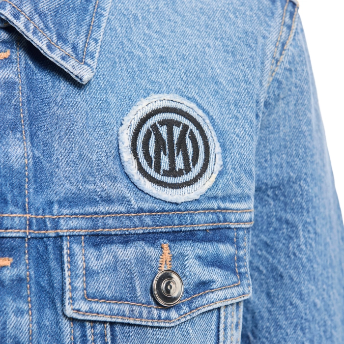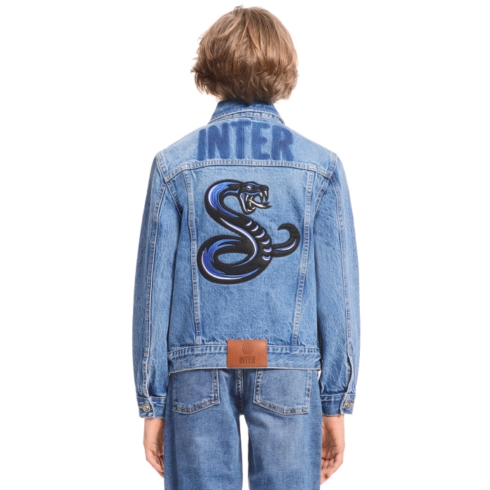 La giacca Denim è personalizzata con il logo del club e il ricamo 1908 sul fronte. Sul retro la lable scamosciata, patch del biscione sulla schiena e scritta INTER. È impreziosita da 2 stelle sulle maniche.