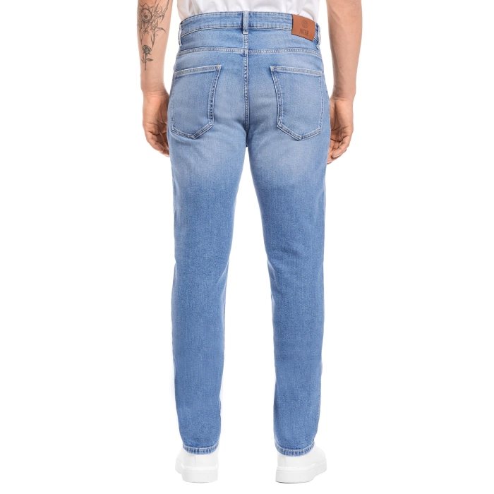 Il pantalone di jeans presenta lable scamosciata personalizzata con logo Inter e ricamo 1908 sulla tasca anteriore.