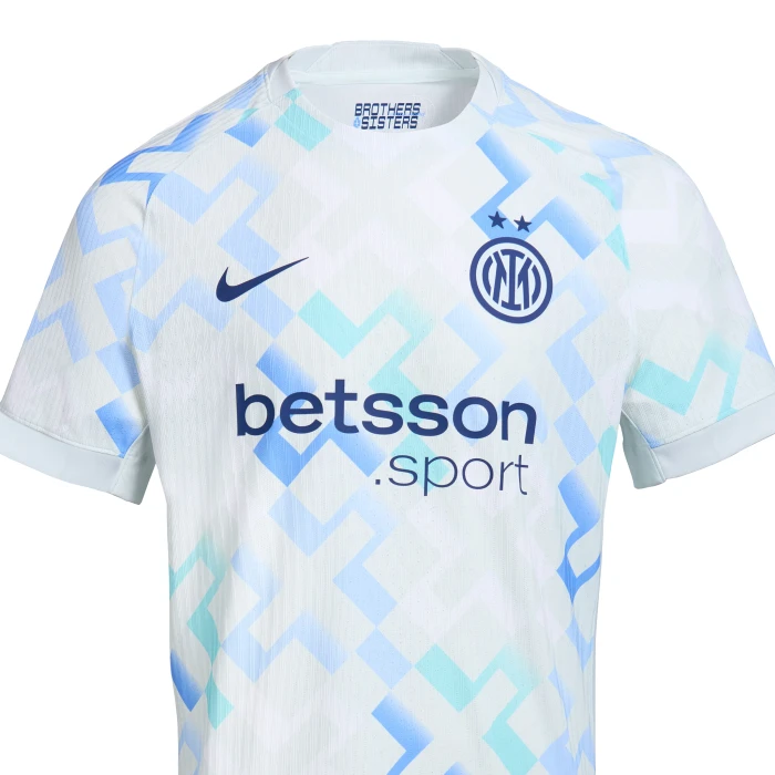 La nuova maglia Away Inter 2025/26, firmata Nike, rende omaggio ai principi fondanti del Club: inclusione e diversità.Il motivo intrecciato, ispirato ai tessuti artigianali, rappresenta visivamente comunità e forza collettiva, valori che definiscono da sempre l’identità nerazzurra.Parte della collezione Match, questa maglia è lo stesso modello autentico indossato dai professionisti in campo, con dettagli premium e tecnologie di ultima generazione.Realizzata in tessuto tecnico 100% poliestere riciclato, integra la tecnologia Nike Dri-FIT ADV, sviluppata attraverso test sugli atleti per garantire freschezza e comfort totale. Le zone a trama aperta, posizionate strategicamente, favoriscono la ventilazione e mantengono la pelle asciutta anche nei momenti più intensi della partita.La maglia può essere personalizzata con nome e numero del tuo giocatore preferito e arricchita con le patch ufficiali Serie A 2025/26 o UEFA Champions League.Dettagli prodotto:Collezione Match – design autenticoMotivo intrecciato ispirato ai tessuti artigianaliTecnologia Nike Dri-FIT ADV per traspirabilità avanzataTessuto tecnico con zone a trama aperta per ventilazione mirataStemma in silicone100% poliestere riciclatoLavabile in lavatriceColore: Ghost Aqua / Bianco / Blue Void