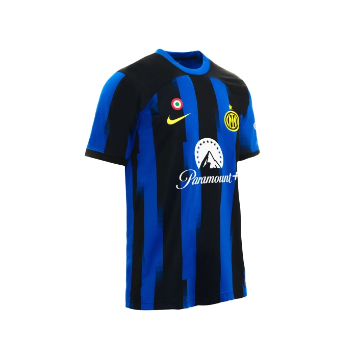 Nella maglia Home Stadium 2023/24 le iconiche righe nere e blu sfoggiano un motivo a mosaico digitale che celebra il fit classico e l'architettura moderna della città antica. Il motivo interno commemora il legame tra l'Inter e la città che chiamiamo casa. La collezione Stadium replica i dettagli del design originale con una tecnologia traspirante, per un look da partita ispirato a quello indossato dai professionisti in campo. La tecnologia Nike Dri-FIT allontana il sudore per favorirne una rapida evaporazione e mantenere la pelle asciutta per un comfort ideale. La maglia è realizzata in poliestere riciclato. Il nuovo Home Kit si completa con pantaloncini e calzettoni di colore nero. Puoi personalizzare la maglia con nome e numero del tuo giocatore preferito e aggiungere le patch della Lega Serie A 2023/24 o Champions League sulla manica.