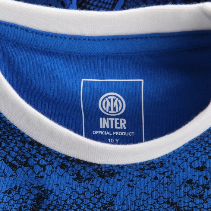 Il pigiama corto INTER per bambino è perfetto per accompagnare i sogni dei piccoli tifosi nerazzurri. Realizzato in 100% cotone, è composto da maglietta e pantaloncini con dettagli black & blue, tape con snake pattern, logo e nome del Club sul davanti.