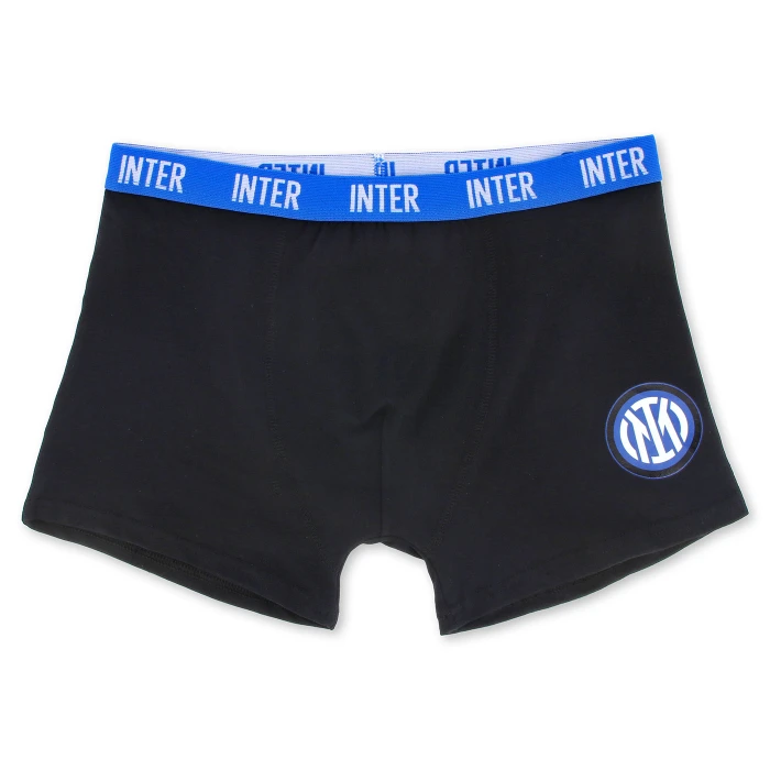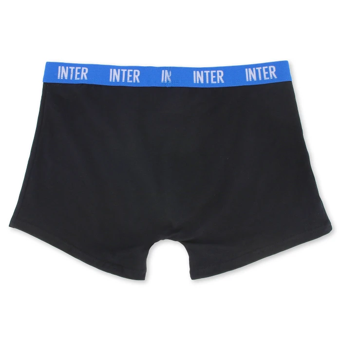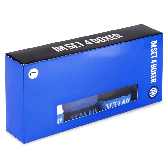 Il set da 4 boxer INTER unisce comfort e stile nerazzurro in ogni dettaglio. Realizzati in 95% cotone e 5% spandex, presentano il crest ufficiale e fascia elastica personalizzata. La confezione include 2 boxer blu (uno tinta unita, uno fantasia), 1 bianco e 1 nero