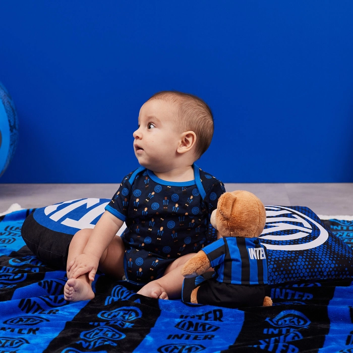 Il set body a maniche corte INTER è realizzato in morbido cotone. Le due versioni realizzate con simpatiche grafche accompagnano i piccoli tifosi nerazzurri nella loro crescita.