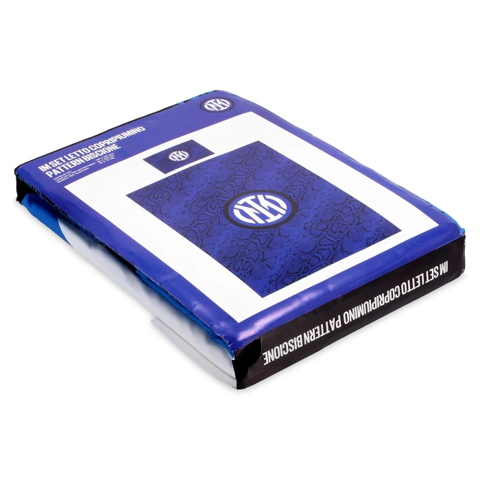 Il set letto singolo INTER con copripiumino è l’ideale per dormire in stile nerazzurro. Realizzato in 100% cotone, include lenzuolo sotto con angoli (90×200 cm), copripiumino e federa, decorati con lo Snake all over pattern e lo stemma ufficiale. Il blu royal aggiunge un tocco elegante alla tua camera da vero tifoso.