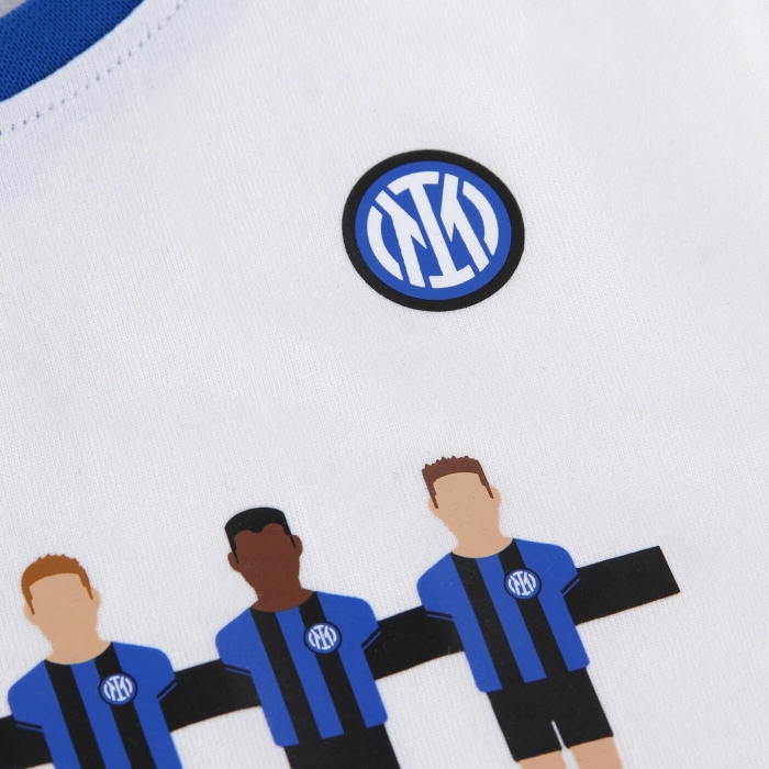 Il set INTER è composto da una maglia a maniche corte con una comoda apertura sulla spalla con bottoni a pressione e un pantaloncino con vita elasticizzata. Il completo è personalizzato con il logo sul cuore e la grafica Calcio Balilla.