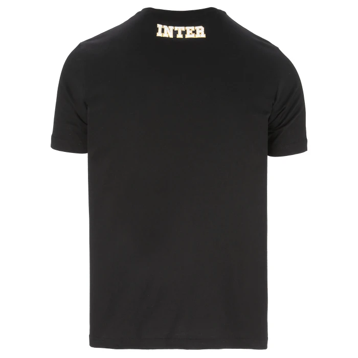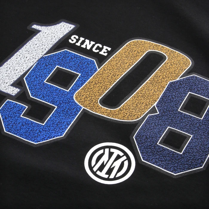 T-shirt girocollo in cotone dal look sportivo e contemporaneo, ideale per i veri tifosi nerazzurri.<br />Il fronte presenta la scritta “INTER” in evidenza, mentre sul retro spicca una grafica circolare in rilievo con la data “1908” - a richiamo dell’anno di fondazione - la scritta Milano, il nome ed il logo del club. Il design è valorizzato da dettagli a contrasto su collo e maniche con motivo grafico ripetuto, per un tocco distintivo e autentico. Perfetta da indossare nel tempo libero o per sostenere la squadra in ogni occasione.<br /><br />- Vestibilità regolare<br />- 100% cotone.