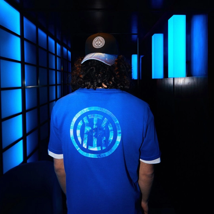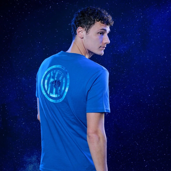 La t-shirt Galaxy INTER è realizzata in morbido jersey di cotone. Nella stampa sul retro è raffigurato il logo del Club in 3D in versione galattica. Sul davanti presenta la scritta INTER reflective posizionata sul cuore.