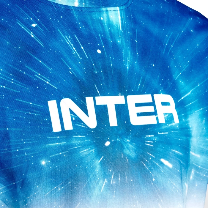 La t-shirt Galaxy fading INTER è caratterizzata da un pattern galattico impreziosito con la scritta INTER al centro.