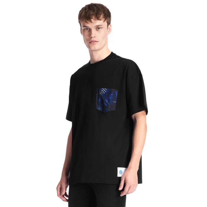 La t-shirt INTER MADE IN MILANO 3 fa parte del terzo drop della collezione nerazzurra a tiratura limitata ideata e prodotta nel territorio meneghino che si distingue per materiali, fit e dettagli di stile. I nuovi modelli vanno ad arricchire il percorso del brand INTER nel mondo dello stile e nel dialogo con le nuove generazioni. Segno distintivo della collezione è l’utilizzo di un materiale innovativo ad alta riflettanza, che si illumina quando colpito da una fonte luminosa. A corredo dei capi è presente la caratteristica etichetta con la dicitura “Made in Milano” posizionata sia internamente che sul fronte dei prodotti. La t-shirt è realizzata in jersey ed impreziosita da taschino frontale realizzato in tessuto riflettente.