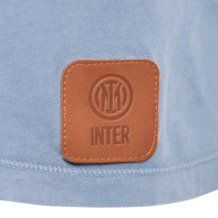 La t-shirt stone wash effetto denim è realizzata in morbido jersey di cotone. Presenta una label scamosciata personalizzata con logo Inter.