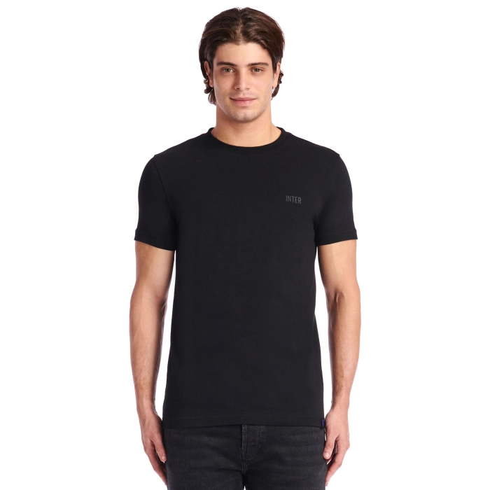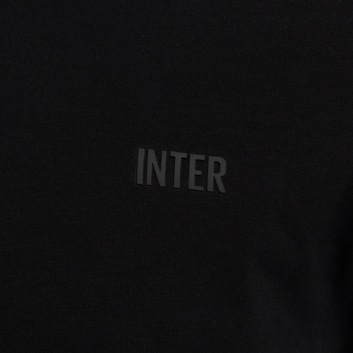 T-shirt INTER manica corta in cotone elasticizzato con collo in costina. Stampa gommata 3D tono su tono con scritta INTER posizionata sul cuore. Logo INTER gommato 3D nero sul retro.
