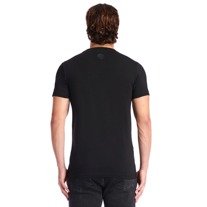 T-shirt girocollo in cotone dal look sportivo e contemporaneo, ideale per i veri tifosi nerazzurri.<br />Il fronte presenta la scritta “INTER” in evidenza, mentre sul retro spicca una grafica circolare in rilievo con la data “1908” - a richiamo dell’anno di fondazione - la scritta Milano, il nome ed il logo del club. Il design è valorizzato da dettagli a contrasto su collo e maniche con motivo grafico ripetuto, per un tocco distintivo e autentico. Perfetta da indossare nel tempo libero o per sostenere la squadra in ogni occasione.<br /><br />- Vestibilità regolare<br />- 100% cotone.