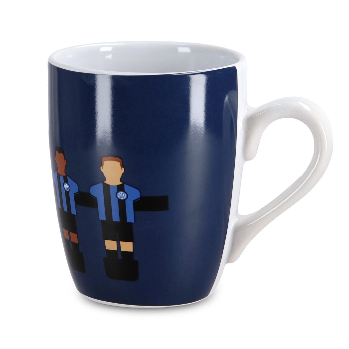 La tazza per bambini INTER accompagna i piccoli tifosi nerazzurri durante le loro colazioni. Abbinata al resto della collezione, è personalizzata con la grafica Calcio Balilla.