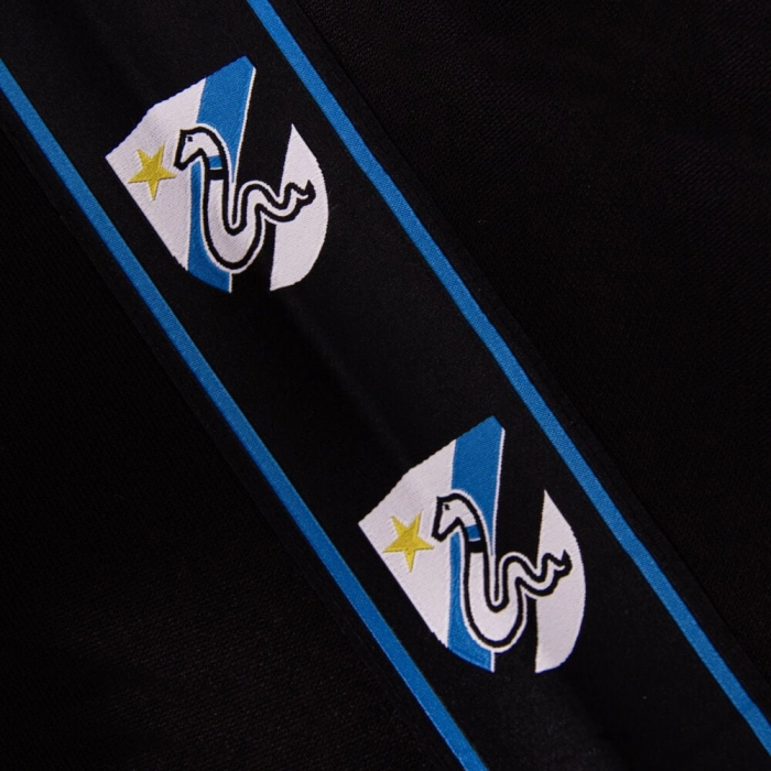 La giacca Retro Taper è realizzata in morbido tessuto. Sulla parte superiore delle spalle e delle maniche è cucito un nastro intrecciato ad alta risoluzione che mostra lo stemma retrò del Biscione. Il capo è completato dal vecchio logo retrò del Club con il Biscione ricamato sul petto.