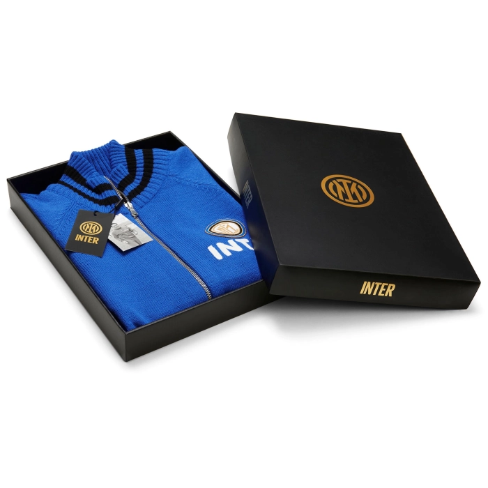 La giacca retro 1960/68 è realizzata in 100% acrilico. La giacca è dotata di colletto alto. Lo stemma e la scritta INTER sono ricamati in stile olandese.