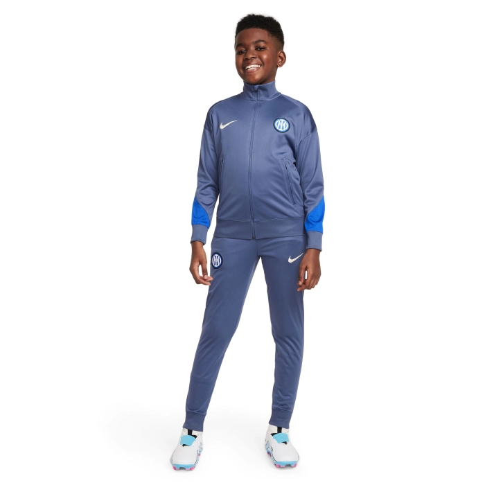 La tuta allenamento INTER sfoggia dettagli di design specificamente pensati per le stelle nascenti del calcio. Il fit casual e rilassato si abbina bene al tessuto traspirante che assicura freschezza per consentirti di affinare le tue abilità con la massima concentrazione. La tecnologia Nike Dri-FIT allontana il sudore per favorirne una rapida evaporazione e mantenere la pelle asciutta per un comfort eccellente. Le tasche con zip ti permettono di riporre al sicuro i tuoi oggetti indispensabili. Le zip nella parte inferiore della gamba consentono cambi rapidi senza togliere le scarpe. Polsi e collo con maglia elasticizzata.