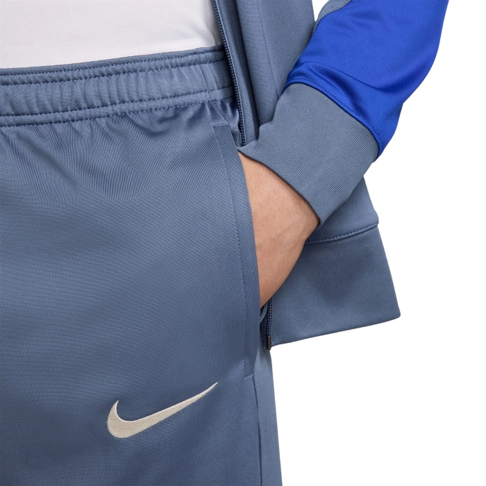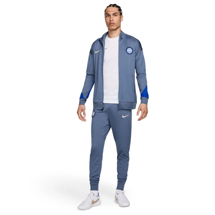La tuta allenamento INTER sfoggia dettagli di design specificamente pensati per le stelle nascenti del calcio. Il fit casual e rilassato si abbina bene al tessuto traspirante che assicura freschezza per consentirti di affinare le tue abilità con la massima concentrazione. La tecnologia Nike Dri-FIT allontana il sudore per favorirne una rapida evaporazione e mantenere la pelle asciutta per un comfort eccellente. Le tasche con zip ti permettono di riporre al sicuro i tuoi oggetti indispensabili. Le zip nella parte inferiore della gamba consentono cambi rapidi senza togliere le scarpe. Polsi e collo con maglia elasticizzata.