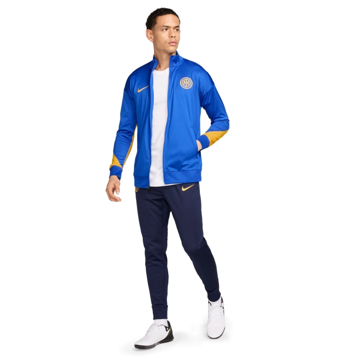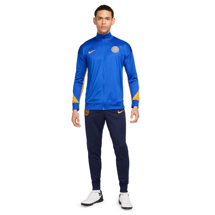 La tuta allenamento INTER sfoggia dettagli di design specificamente pensati per le stelle nascenti del calcio. Il fit casual e rilassato si abbina bene al tessuto traspirante che assicura freschezza per consentirti di affinare le tue abilità con la massima concentrazione. La tecnologia Nike Dri-FIT allontana il sudore per favorirne una rapida evaporazione e mantenere la pelle asciutta per un comfort eccellente. Le tasche con zip ti permettono di riporre al sicuro i tuoi oggetti indispensabili. Le zip nella parte inferiore della gamba consentono cambi rapidi senza togliere le scarpe. Polsi e collo con maglia elasticizzata.