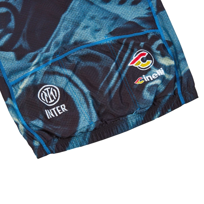 La maglia gara INTER x CINELLI presenta un design che si ispira alla storia e all'arte di Milano, al suo dinamismo e ai suoi principali simboli. La maglia è realizzata in Italia con tessuto ultra-traspirante ed è impreziosita dalle cuciture a vista a 4 aghi, che richiamano la tradizione manifatturiera della città e disegnano un interessante contrasto sul pattern. La maglia presenta tre tasche posteriori, manica a taglio vivo con fit aerodinamico e una lunga cerniera frontale per un fit ultra-rapido. Vestibilità Slim.