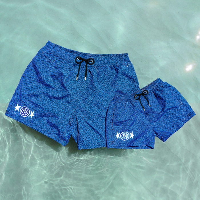 Scopri la Special Collection INTER X MC2 Saint Barth. Il costume da bagno da bambino è realizzato in tessuto leggero che si asciuga rapidamente. Il girovita elasticizzato e la chiusura con coulisse garantiscono una vestibilità comoda, mentre gli occhielli logati sono strategicamente posizionati per drenare l'acqua e prevenire il gonfiore dei pantaloncini. Dotati di tasche laterali con cuciture francesi e di una tasca posteriore con chiusura magnetica, questi pantaloncini da bagno sono pratici e alla moda. Realizzati in 100% poliestere riciclato, questi pantaloncini riflettono il nostro impegno per la sostenibilità.